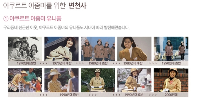 야쿠르트 아줌마는 1971년 시작했다. 이후 1975년 1000명, 83년 5000명, 98년 1만명을 넘어섰다. 현재는 1만1000명이 일하고 있다. 최근에는 야쿠르트 외에도 커피와 간편식도 배달하고 있다.